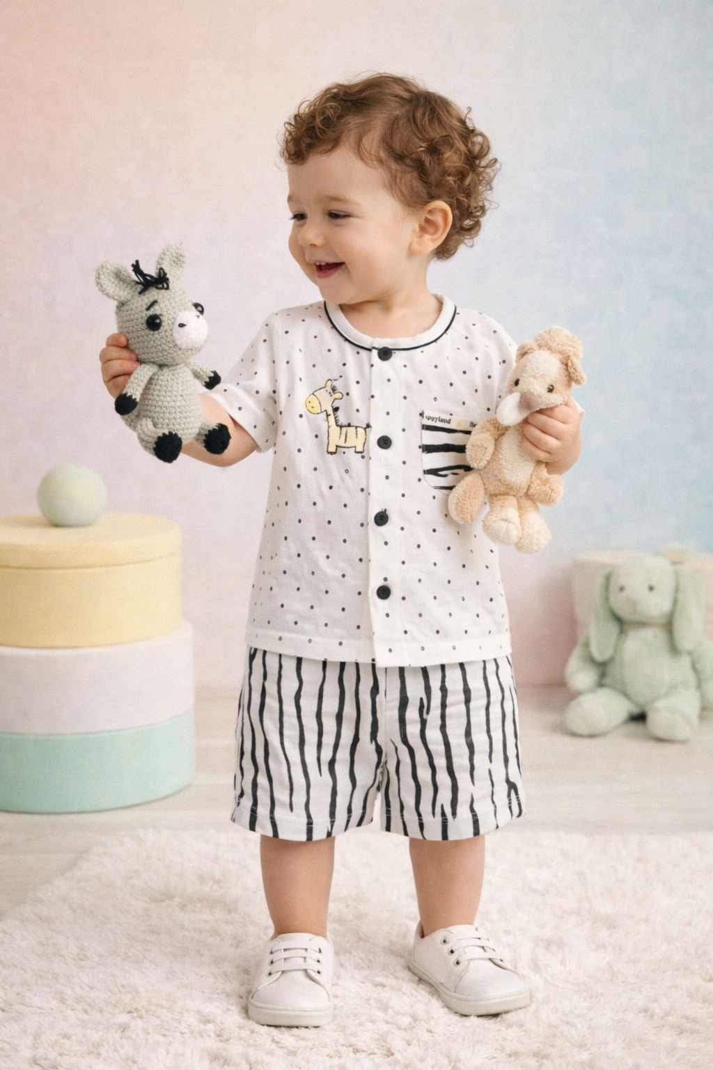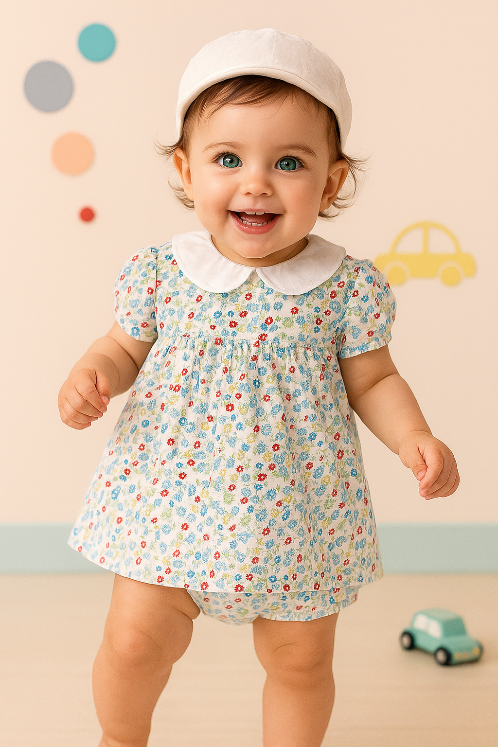 پیراهن و شورتک نخ پنبه برند Happy baby کره جنوبی