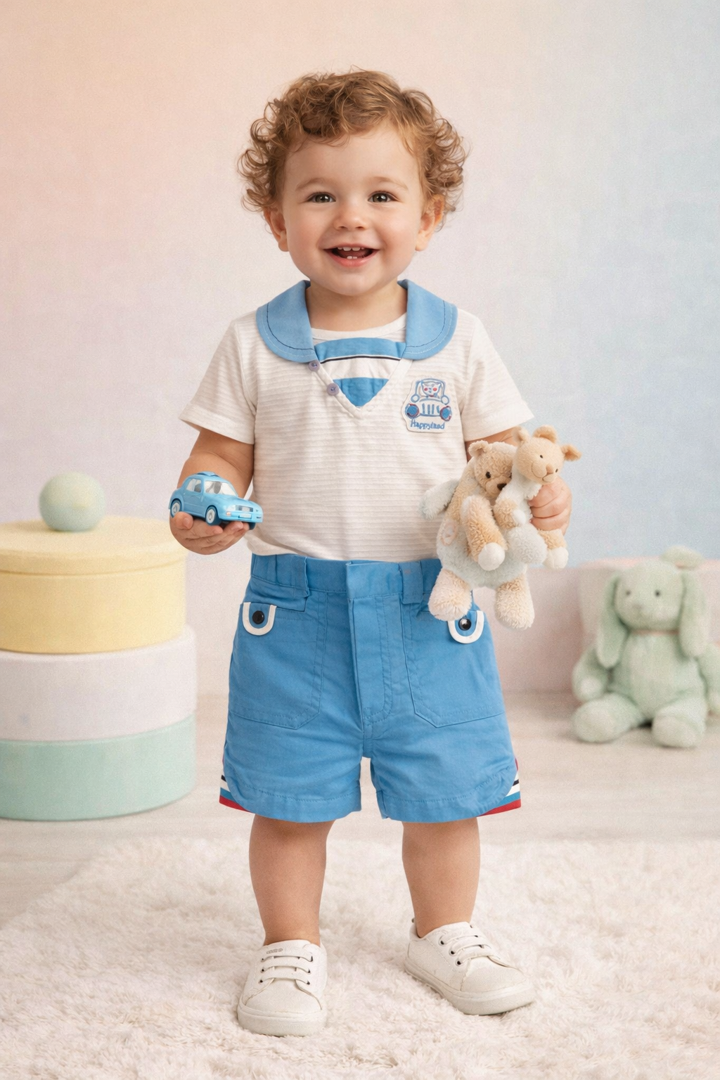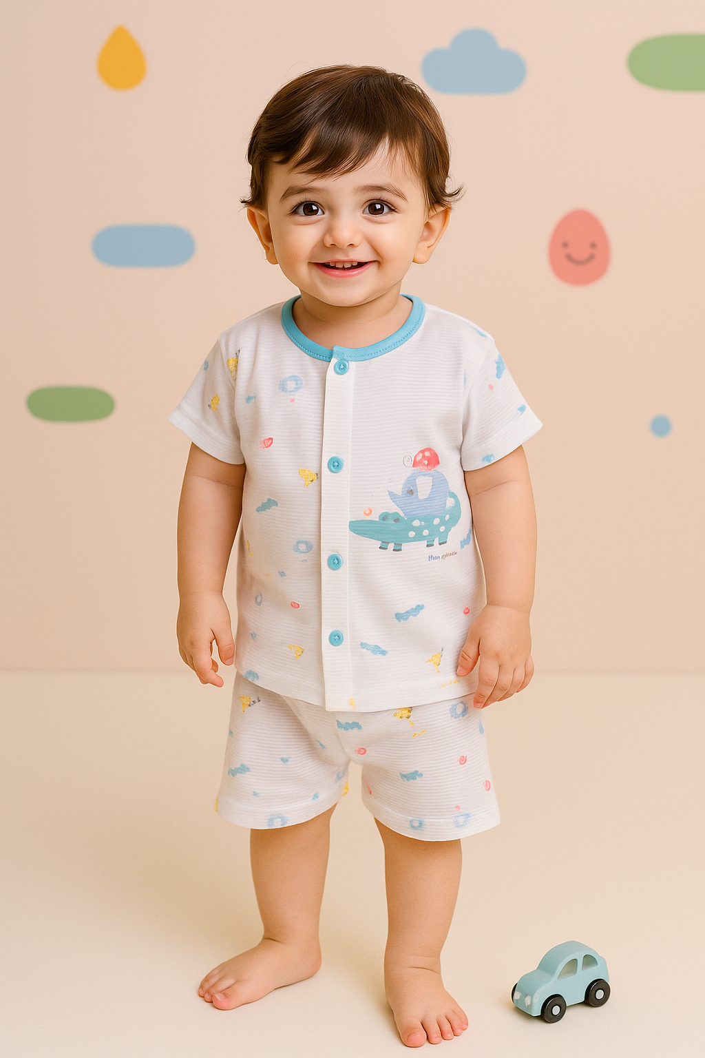 ست بلوز و شلوارک نخ پنبه برند Happy baby کره جنوبی