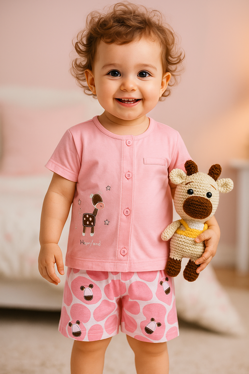 ست تیشرت و شلوارک بچگانه برند Happyland با طراحی راحت و کیفیت بالا، گزینهای ایدهآل برای روزمره و بازیهای کودکانه است.