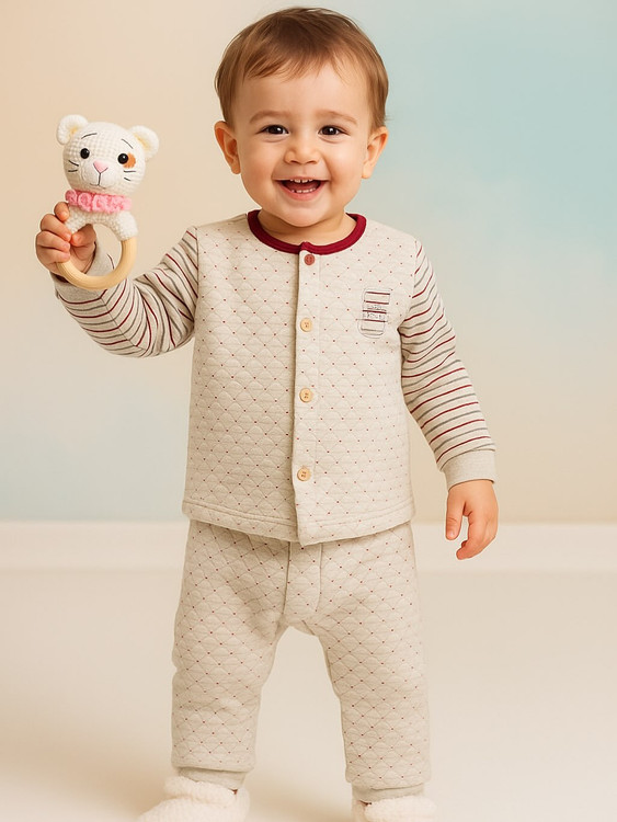 این محصول از جنس نخ ۱۰۰٪ طبیعی ساخته شده که لطیف، نرم و مناسب فصل پاییز است، بنابراین کودک شما در طول روز احساس آسایش و آزادی حرکت خواهد داشت.