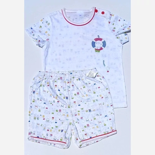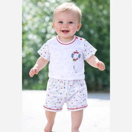 این محصول از جنس نخ ۱۰۰٪ طبیعی ساخته شده و شلوارک از جنس کتان است که لطیف، نرم و مناسب فصل بهار و تابستان است، بنابراین کودک شما در طول روز احساس آسایش و آزادی حرکت خواهد داشت.