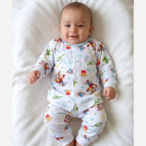 این محصول از جنس نخ پنبه ۱۰۰٪ طبیعی ساخته شده که لطیف، نرم و مناسب ۴فصل است، بنابراین کودک شما در طول روز احساس آسایش و آزادی حرکت خواهد داشت.