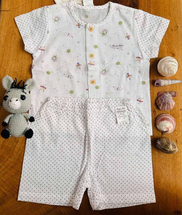 ست بلوز و شلوارک بچگانه برند Premier jour با طراحی راحت و کیفیت بالا، گزینهای ایدهآل برای روزمره و بازیهای کودکانه است.