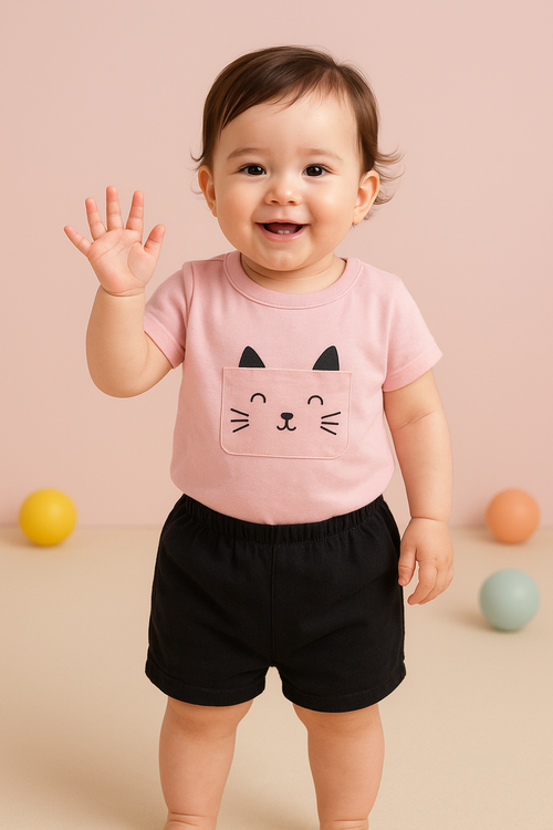 ست تیشرت و شلوارک بچگانه برند Happyland با طراحی راحت و کیفیت بالا، گزینهای ایدهآل برای روزمره و بازیهای کودکانه است.