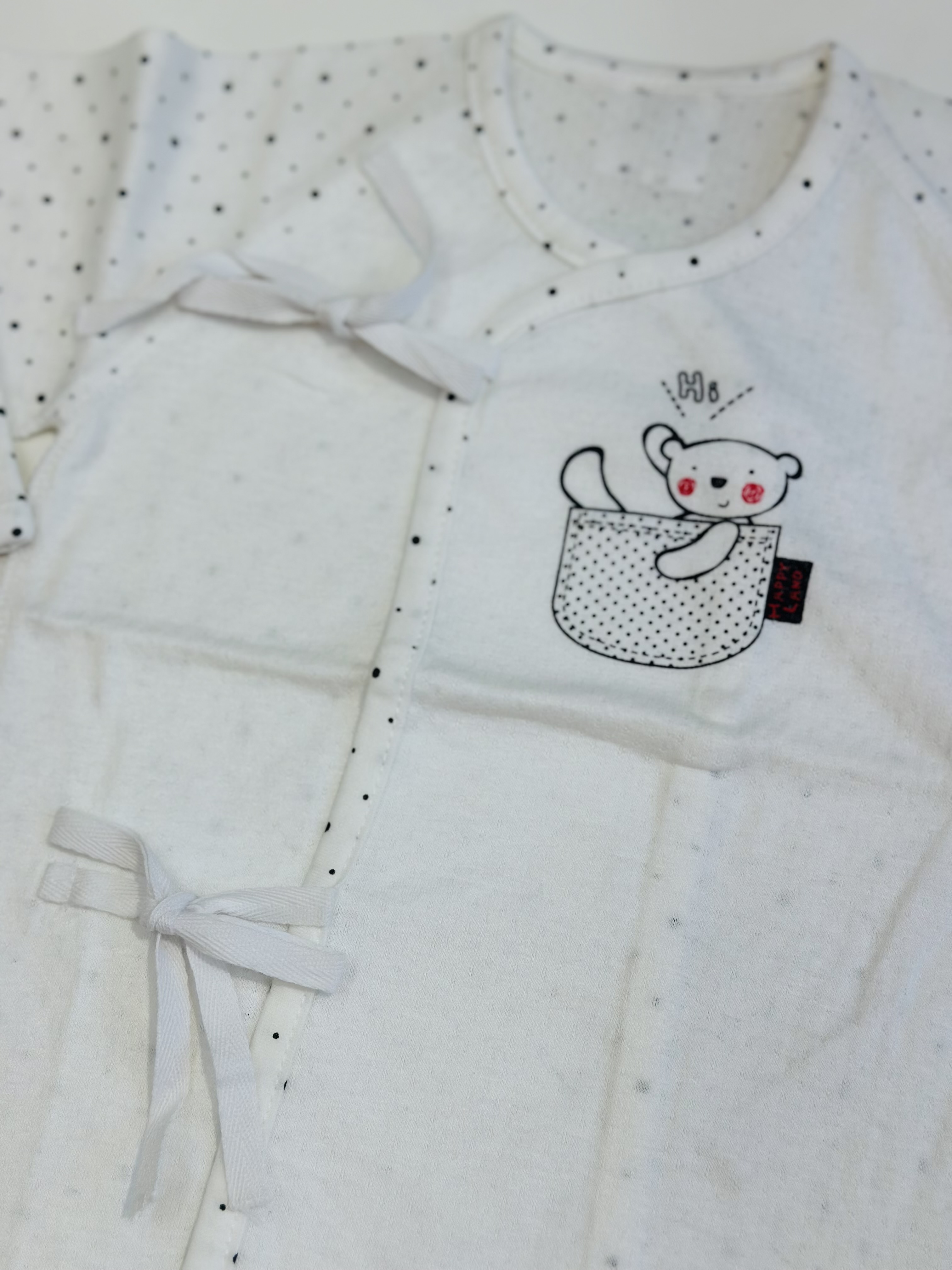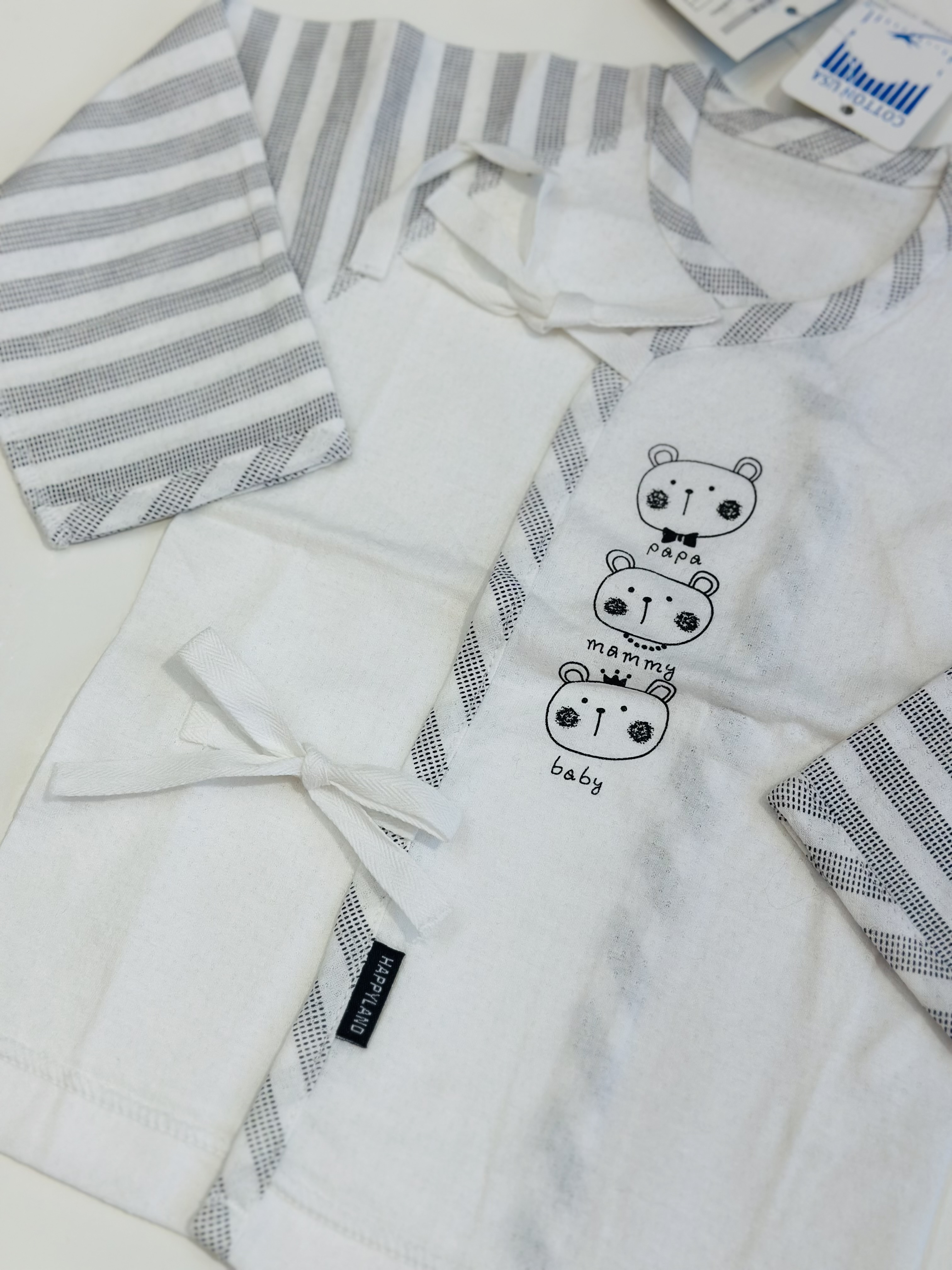 پیراهن نوزادی بندی کره ای برند Happyland با طراحی راحت و کیفیت بالا، گزینهای ایدهآل برای روزمره و بیمارستان است.