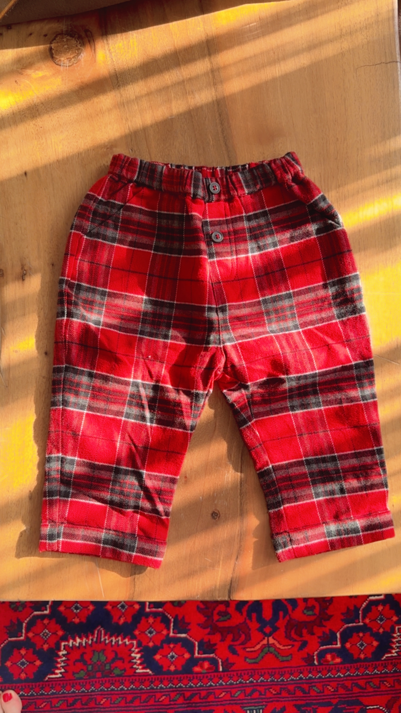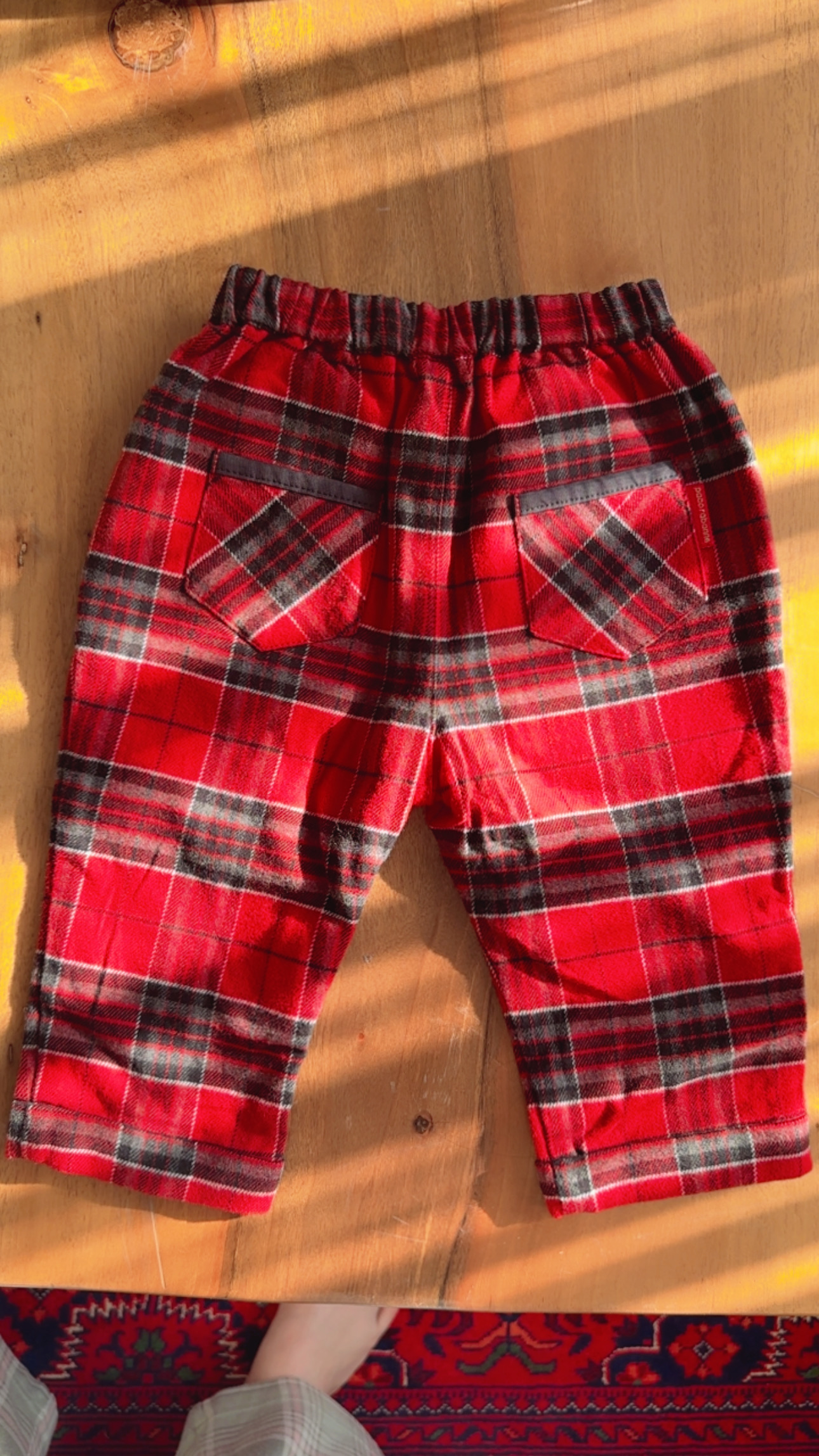 شلوار چهارخانه کشمیر قرمز وارداتی از کره جنوبی