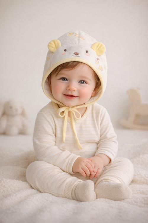 کلاه نوزادی گوش دار برند Happyland با طراحی راحت و کیفیت بالا، گزینهای ایدهآل برای روزمره و بازیهای کودکانه است.