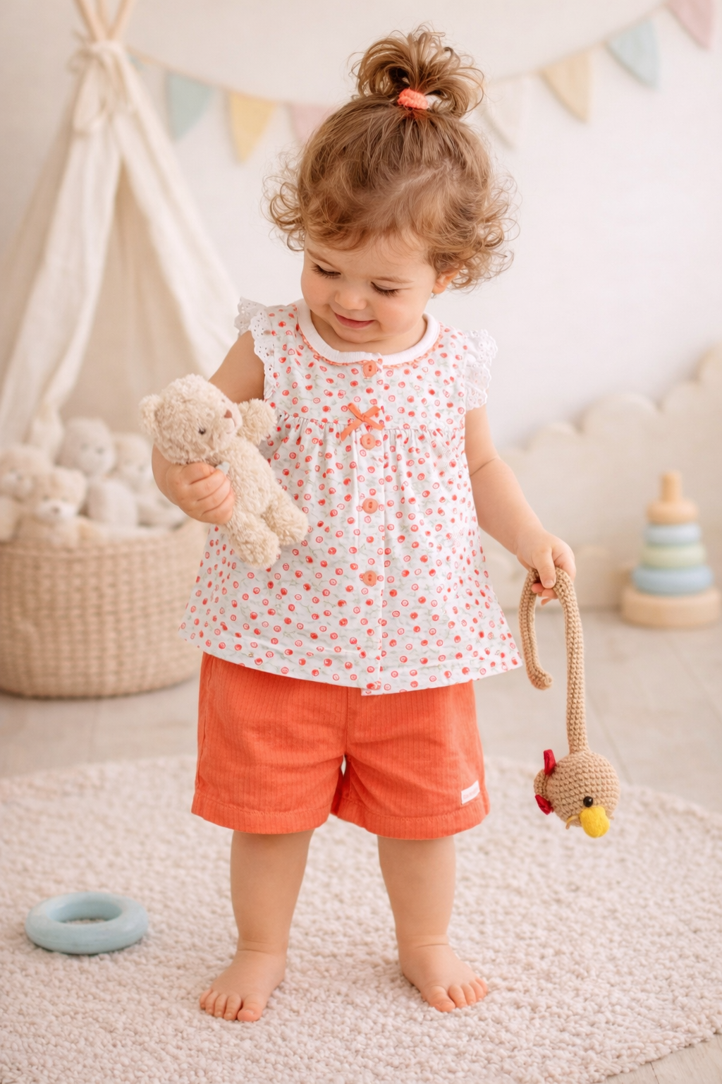 پیراهن و شورتک نخ پنبه برند happy land کره جنوبی