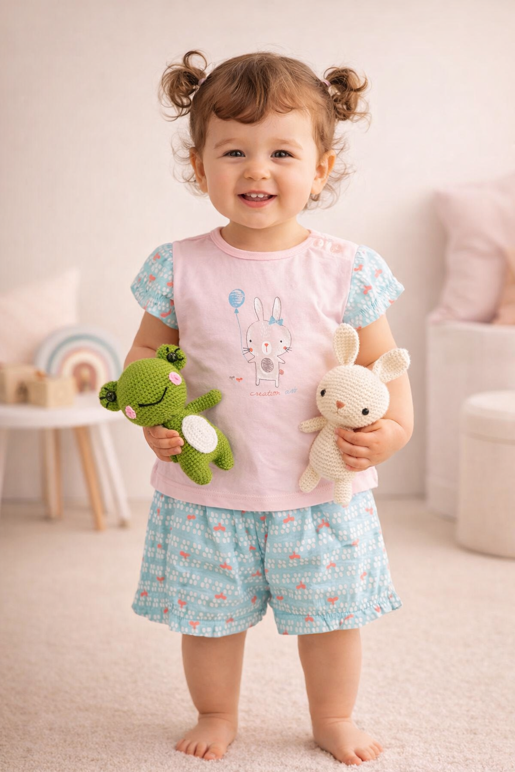 پیراهن و شلوارک نخ پنبه برند happy baby کره جنوبی